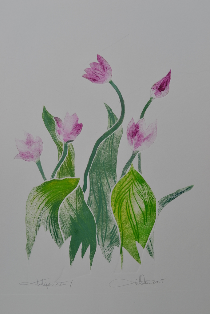 Tulpen XIII / Tulipes XIII - droge naald en aquatint - uitgezaagde zinkplaatjes - meerkleuren - oplage 1
