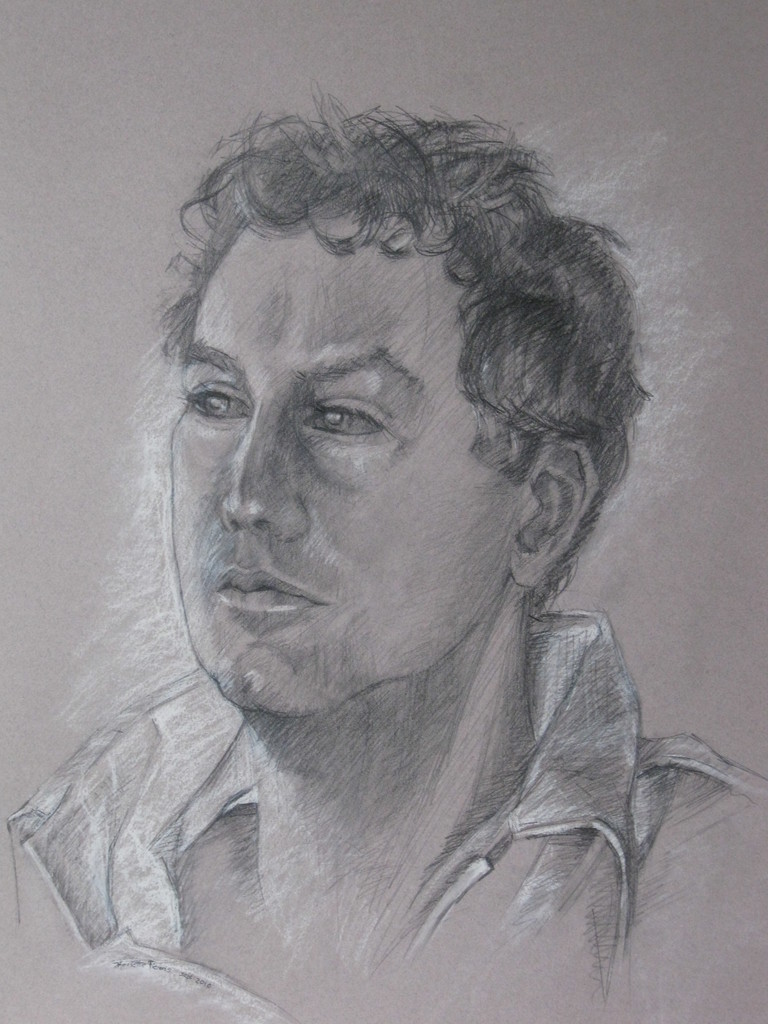 Portret gemaakt van mijn zoon, in potlood en wit krijt.