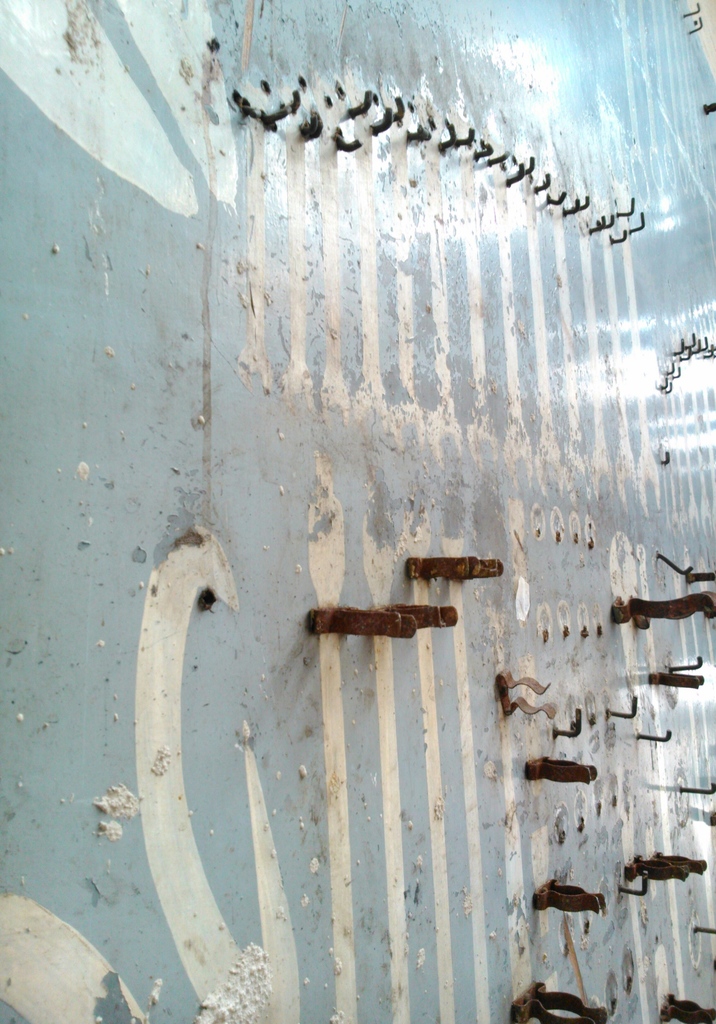 Een foto genomen tijdens een congres gehouden in een oude ns loods. Daar hing een bord met gereedschapppen erop afgebeeld. Vroeger hing daar allen gereedschap aan nu is het nog een herrinering van die tijd.