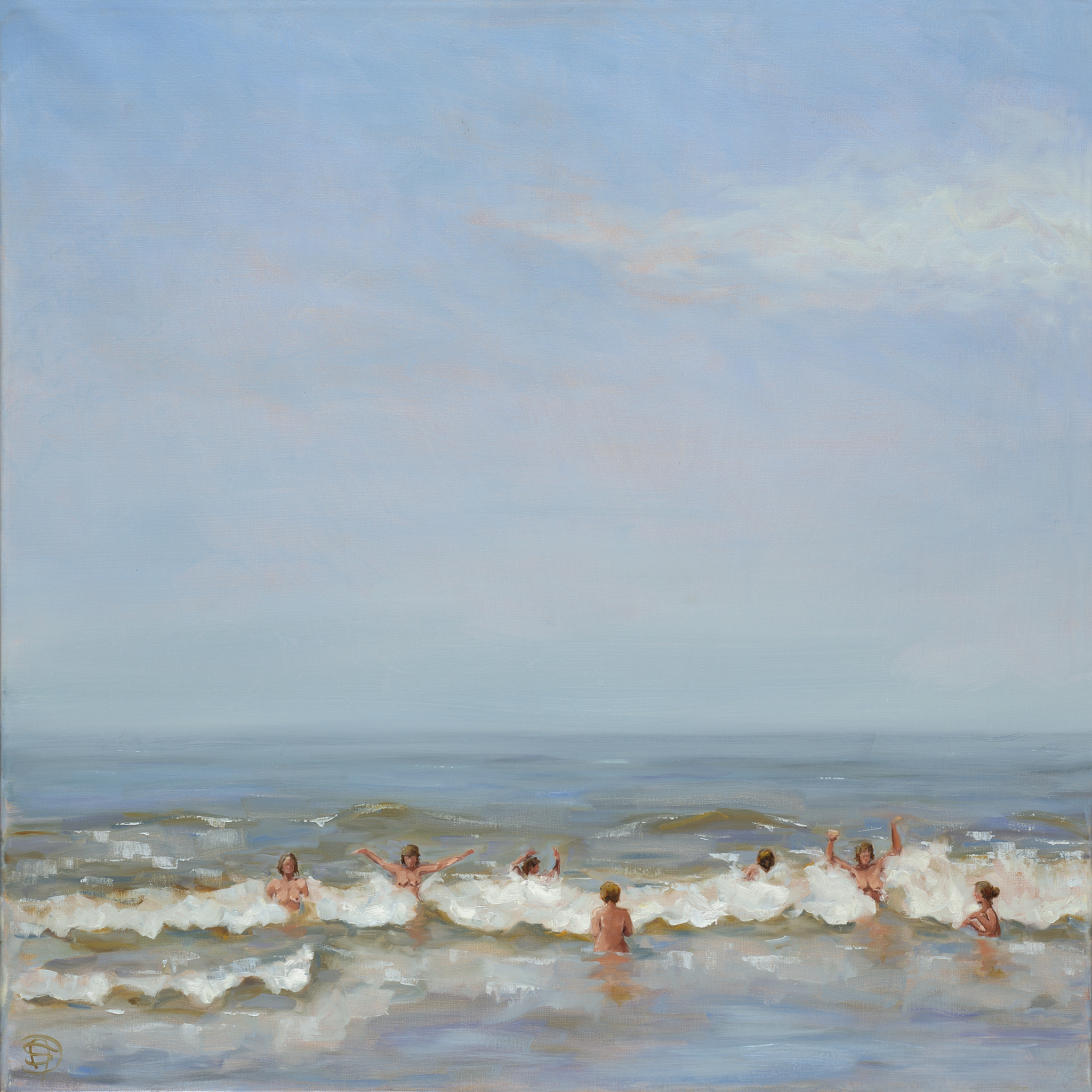 De titel 'De Baadsters' uit de kunstgeschiedenis (Cezanne, Courbet, Renoir) inspireerde mij tot het maken van mijn 'Baadsters'.