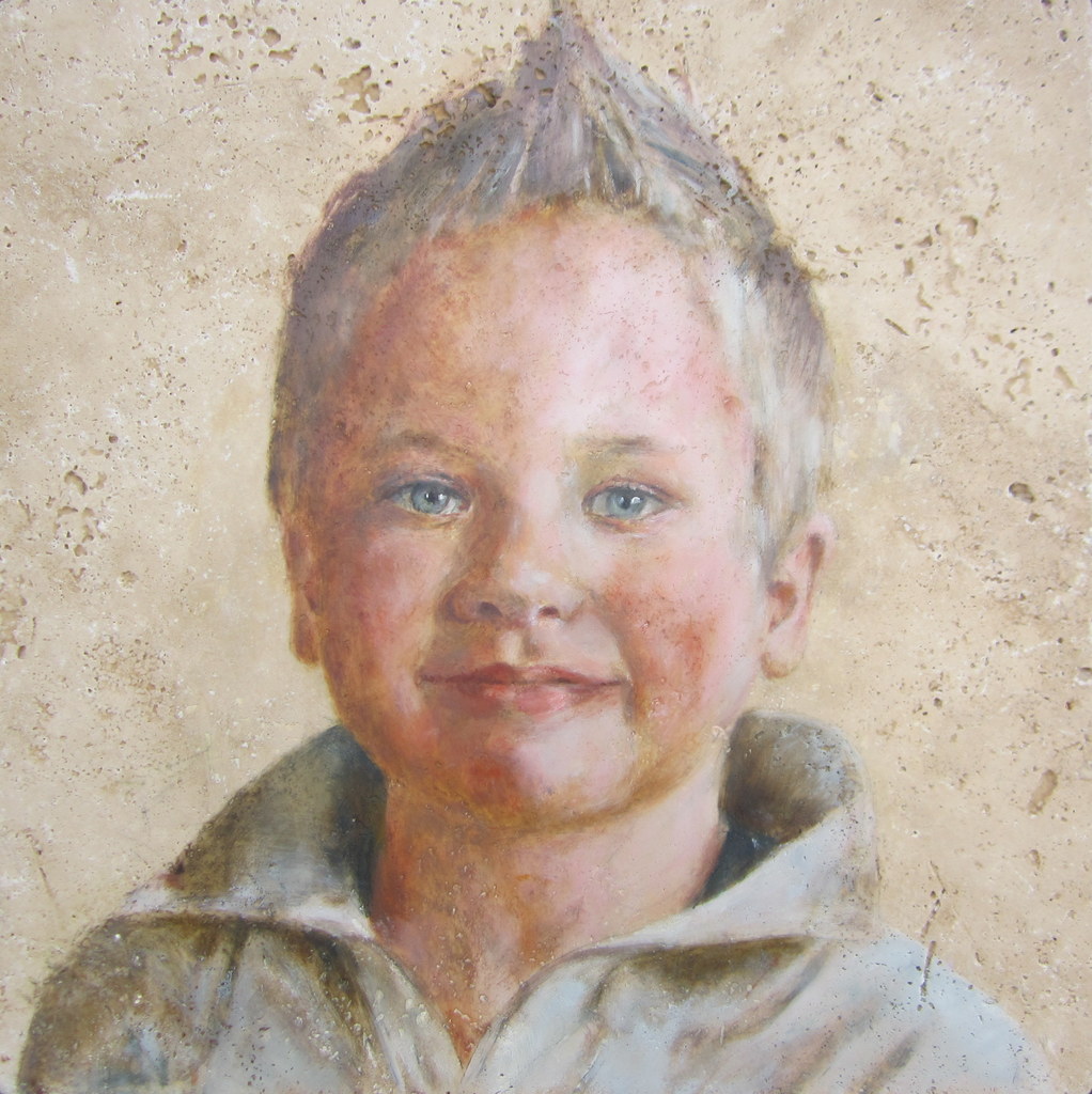 Jongen Portret Olieverf Nisett De Wit Nieuwerbrug Portrettist Realistisch Steen Travertin Boy Vier Jaar Nederland Bodegraven Woerden Galerie Expositie