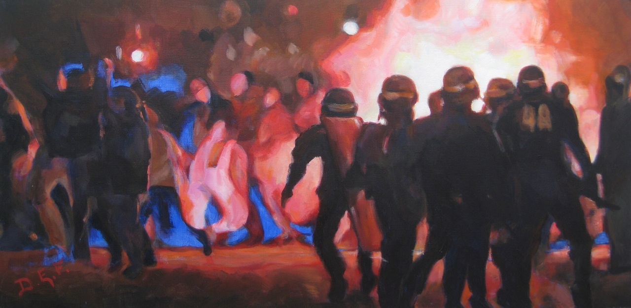 Mensen Rood Emotie Blauw Acryl Veiligheid Dansen Helm Politie Vechten Oproer Betoging Betoger
