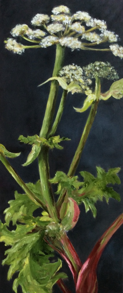 Tijdens een workshop buitenschilderen deze mooie berenklauw in bloei zien staan