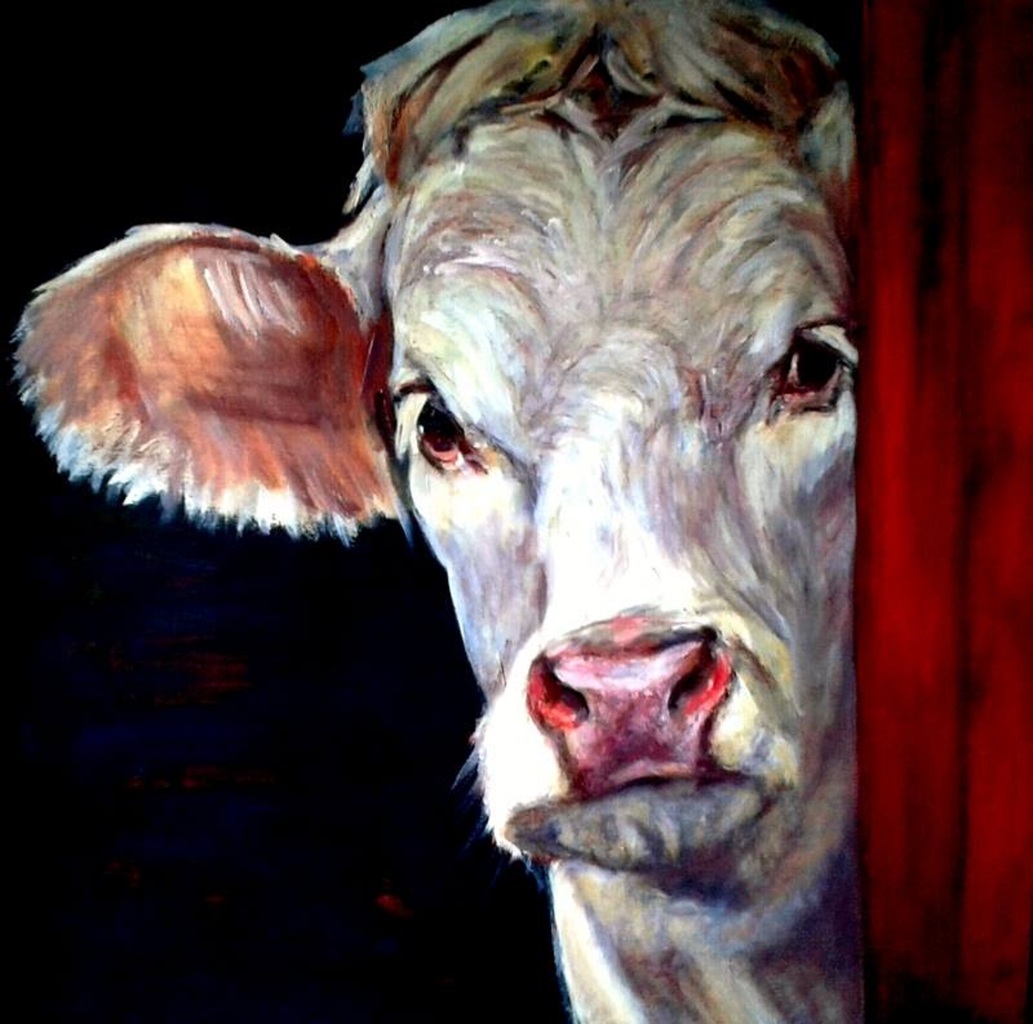 Schilderij Portret Kleurrijk Koe Koeien Verkocht Kunstkaart Sold Koeienschilderijen Liesbethserlie