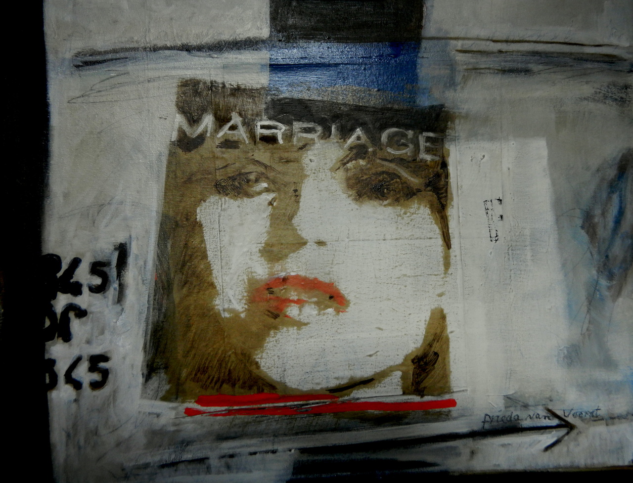 Ik woon en werk in Noord Italie,in het bergdorp Garzeno boven het Como-meer. Mijn schilderijen kenmerken zich door een combinatie van figuratie en abstractie. Grafische elementen, foto's, tekst,collages van stukken krant vormen een essentieel onderdeel van de totale compositie.