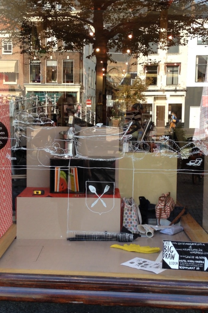 In het kader van The Big Draw en De Kunstroute Leiden heb ik de etalage van Kitchen Art voorzien van een tekening. Hierop staan hutspot ingrediënten in het kader van “Leidens Ontzet”. Mijn dochter heeft hier een timelapse-filmpje van de vervaardiging gemaakt. Klik op "The Kitchen Drawer" links van de foto om bij het filmpje te komen.