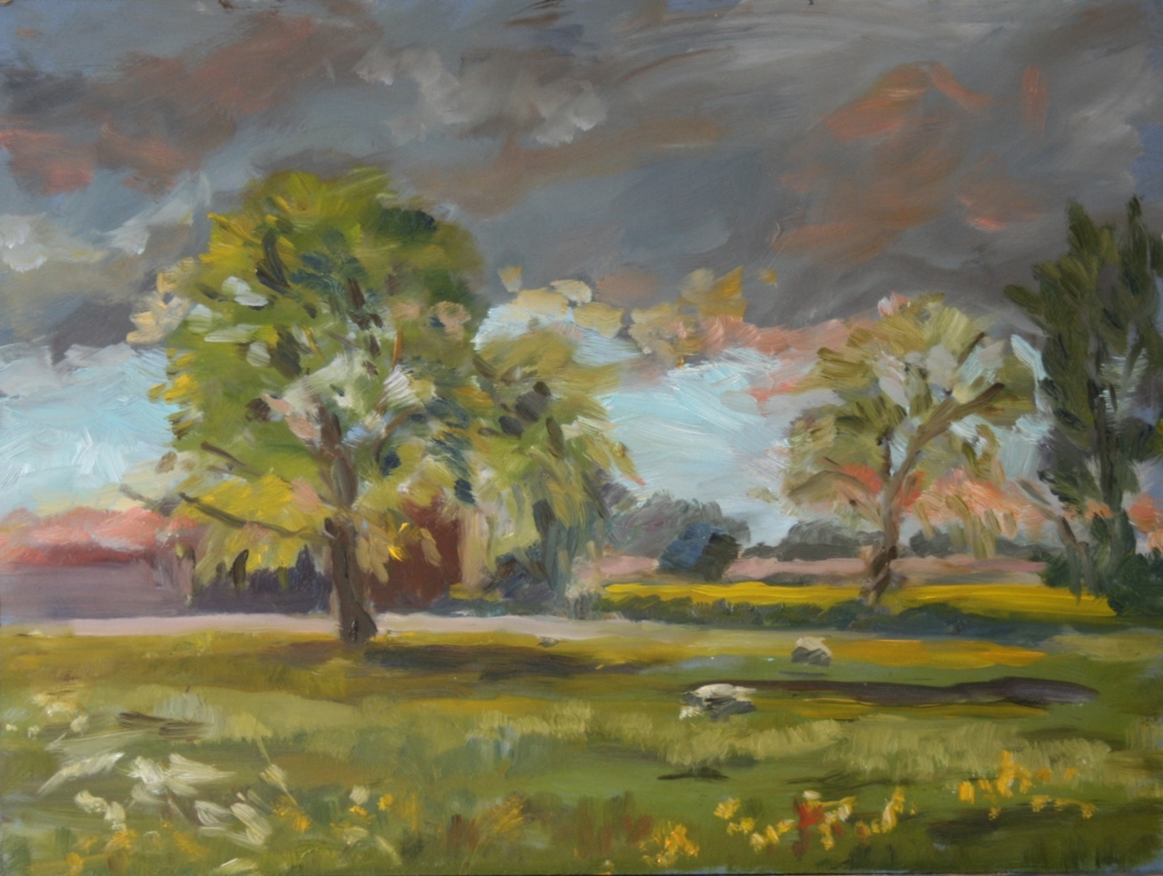 landschap met schapen en bomen plein air geschilderd op een avond in mei bij Buitenstvallaat