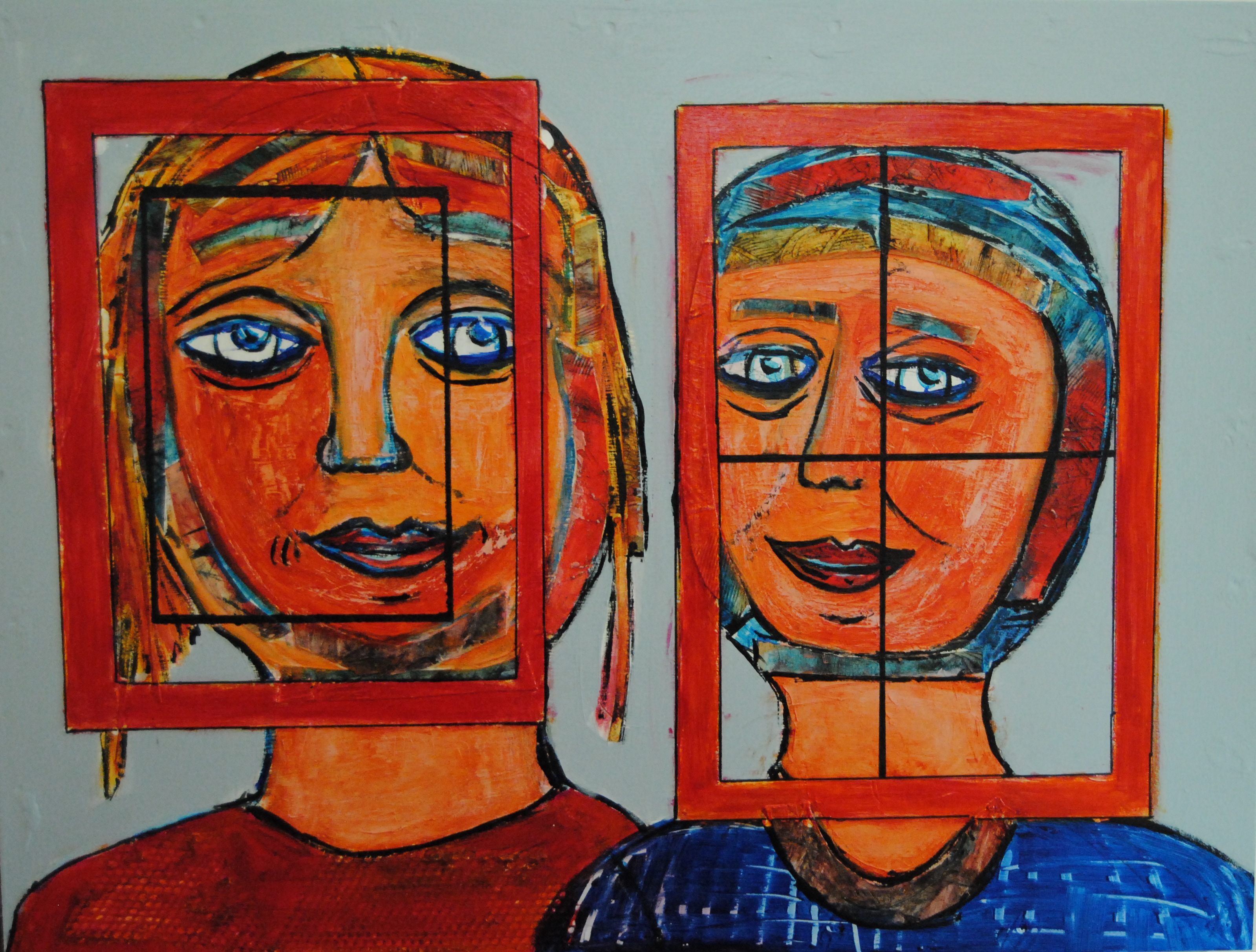Twee vrouwen, beiden gevangenen van hun cultuur. Geschilderd op een houten paneel.