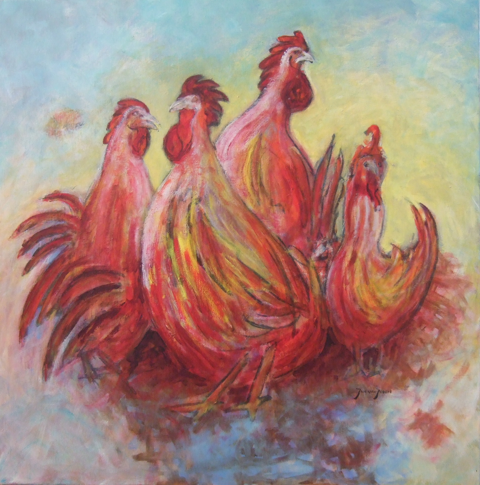 Art Painting Kunst Schilderij Kleur Haan Cock Collourful Haantjes