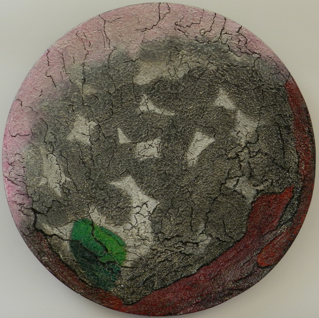 Kunstschaal met acryl en mixed media, geinspireerd op de natuur.