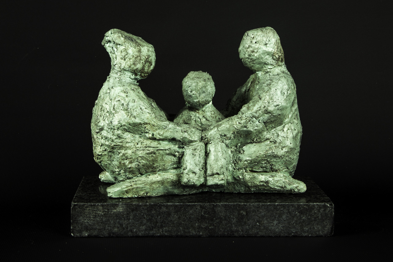 Liefdevol beeldje Ouders met het kindje beschermd tussen hen in. Zij zullen er altijd zijn voor hun kind..... Het beeldje wordt geleverd met sokkel Het is gemaakt van grove chamotte klei en afgebakken op 1000 graden Daarna in verschillende lagen brons gekleurd Het beeldje kan binnen maar kan ook buiten staan (met vorst afdekken of naar binnen) Heeft u vragen, stuur me dan even een berichtje Mvrgr