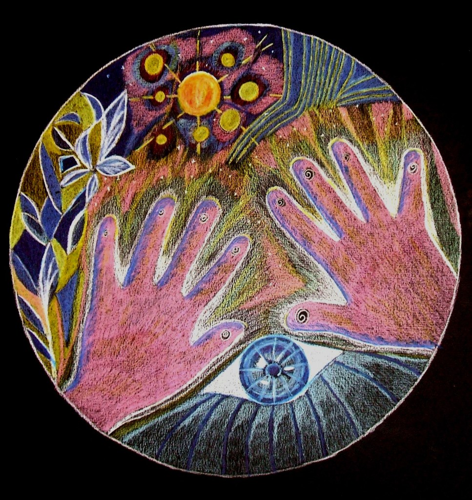 Zwart Kleurrijk Handen Stralen Mandala Groei Genezing