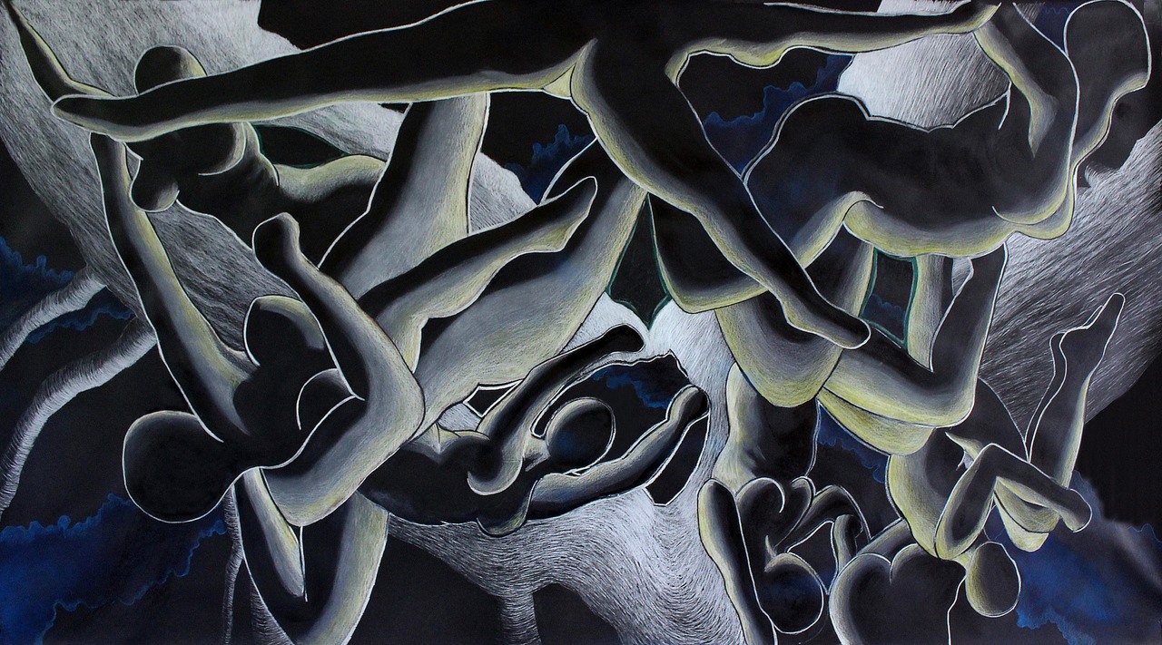 Drawing is a discipline in which ‘looking outside’ and ‘looking and moving within the frame of the paper’ is very important. Sources of inspiration are urban and industrial landscapes and shapes of the human body. Tom’s work consists of countless shades of black but he also uses colour in an exciting way. The artworks change as the daylight changes. Observations and impressions from spending time outdoors inspire his artwork. His skilled drawings may develop into new drawings as well as paintings. In his paintings he combines colour, patches and blots with lines to create several spaces.