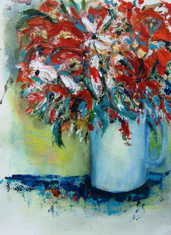 Samen met met mijn man wonen we inmiddels al vele jaren in Lelystad. De zeilsport die wij als hobby hadden, was de reden om onze woonplaats Amersfoort voor Lelystad te verruilen. Na een aantal jaren aquarel- en acrylschildercursussen gevolgd te hebben, ben ik nu lid van de Lelystadse Amateur Kunstenaars(LAK). Sindsdien heb ik nog meer plezier in het schilderen. De leden en het programma van de LAK zorgen voor genoeg ideeën om mee aan de slag te gaan en te blijven. Mijn inspiratie zoek ik dicht bij mijzelf, maar dat hoeft niet dichtbij te zijn. Kleinkinderen, verre reizen en dingen om mijn heen vragen om geschilderd te worden.