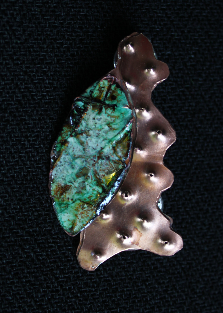 Emaille met kleuren, gelegd op bewerkt koper