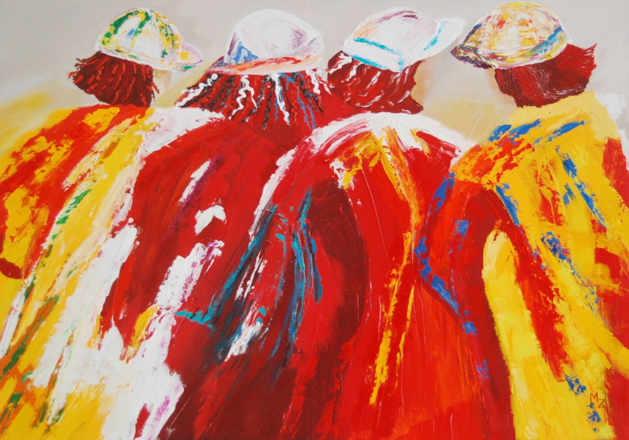 Wit Abstract Rood Oranje Geel Acryl Vriendinnen Aan Schouder Doesburg