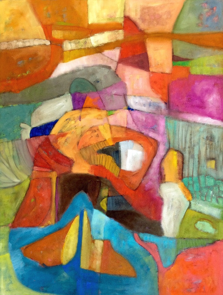 Abstracte schilderijen en dito beschilderde objecten in een stijl die ligt tussen geraffineerde eenvoud en georganiseerde chaos