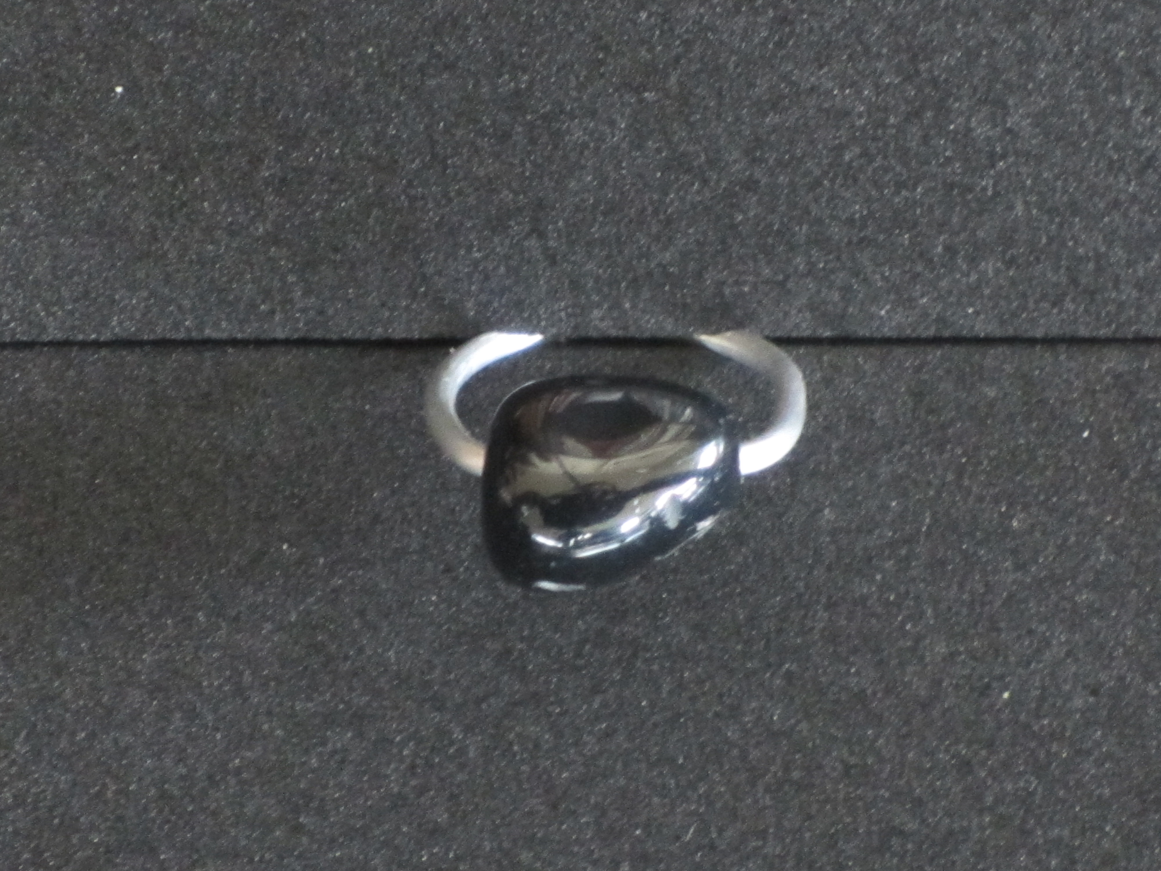 Ring met zwarte glimmende steen. Voor bestellen zie beschrijving: "'ringen''.