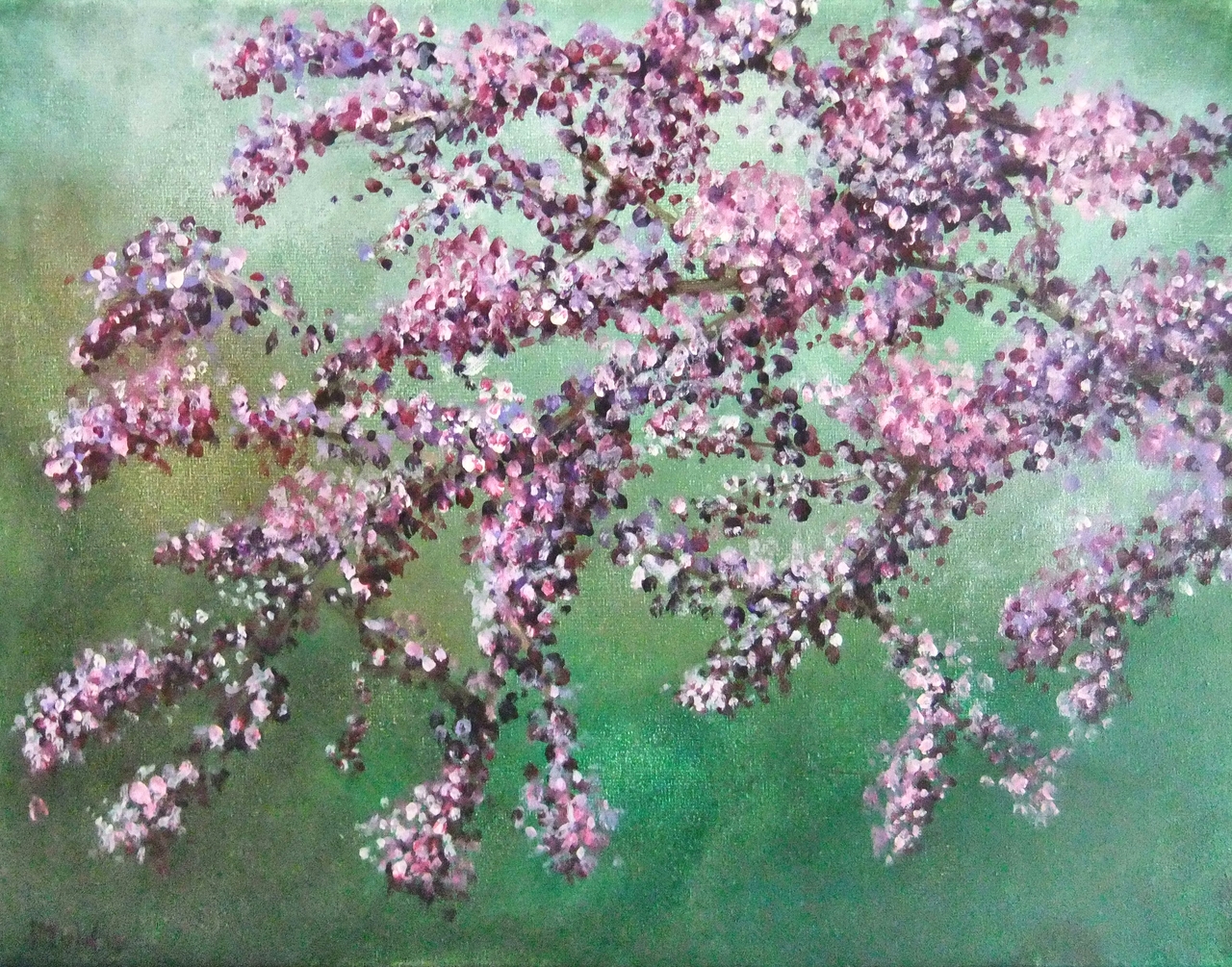 Paars Groen Van Bloem Schilderijen Roze Bloesem Voorjaar Verjaardag Hoorn