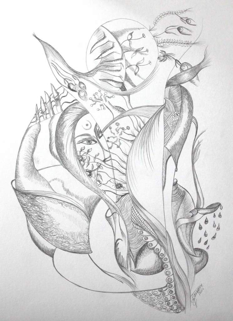 Bloemen Potlood Gezicht Tekening New Face Drawing Flowers Fantasie Nieuwe Droom Wereld World Fantasy Nature Surrealism Dream Pencil