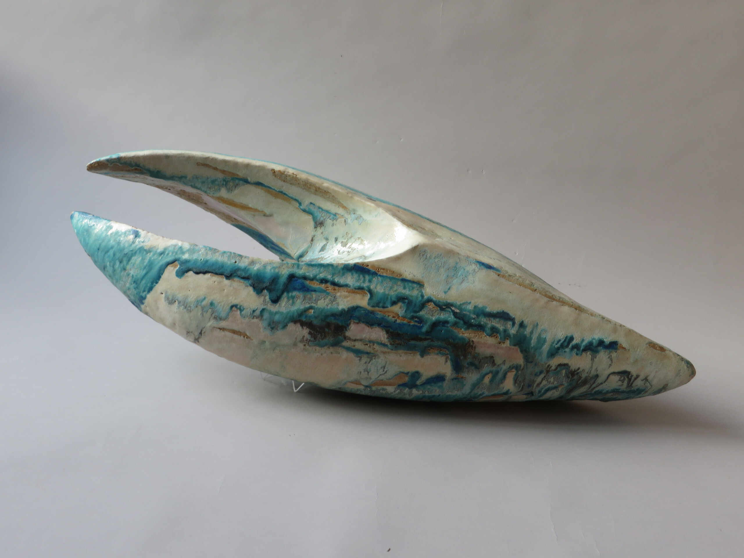 Dit is de grootste vorm van de serie 'puntgrijpers'. Steengoed, glazuur.