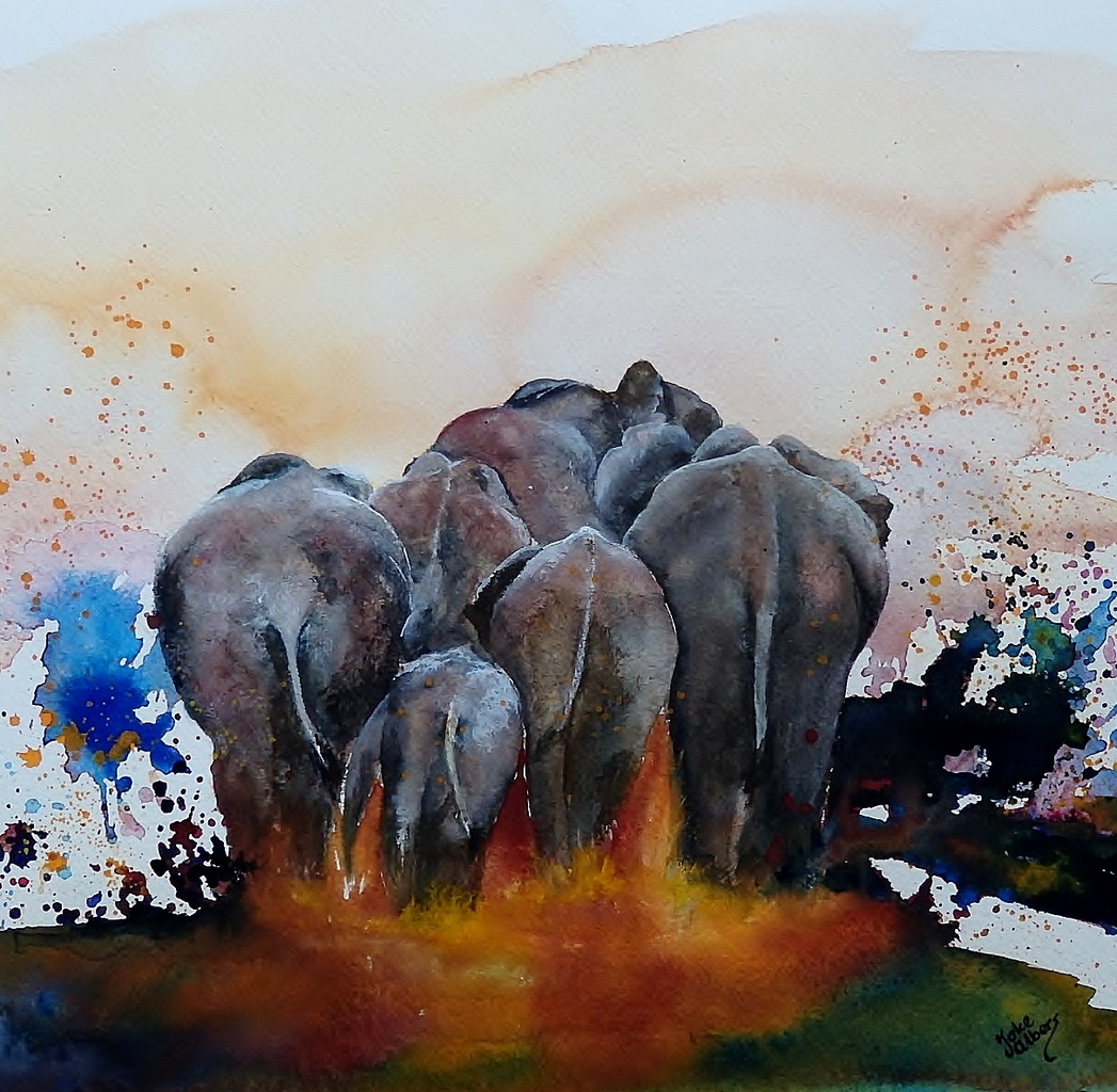 Lopen/wandelen Zon Afrika Olifant Kleuren Koe Aquarel Warmte Stappen Kudde Wildernis