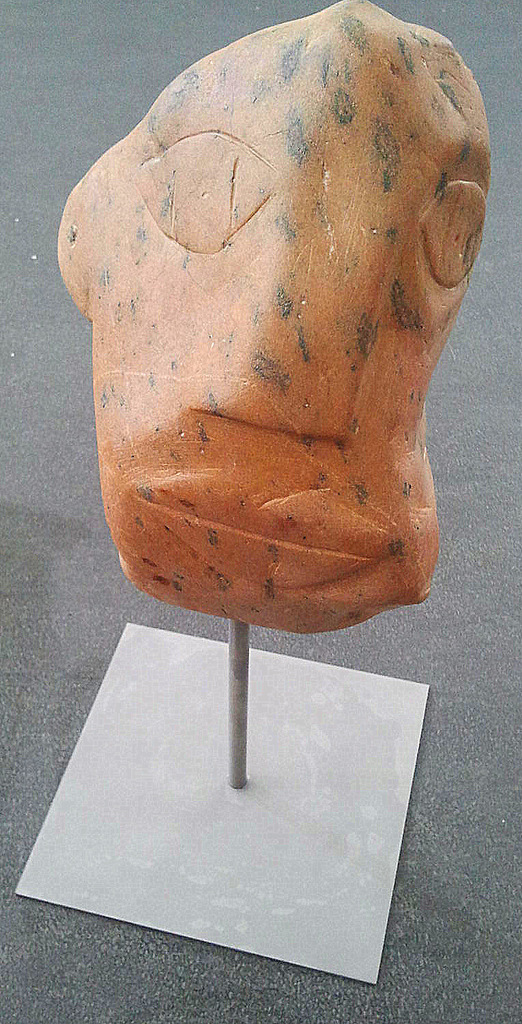 hoofd van braziliaans speksteen met sokkel (hoogte met sokkel 35cm)