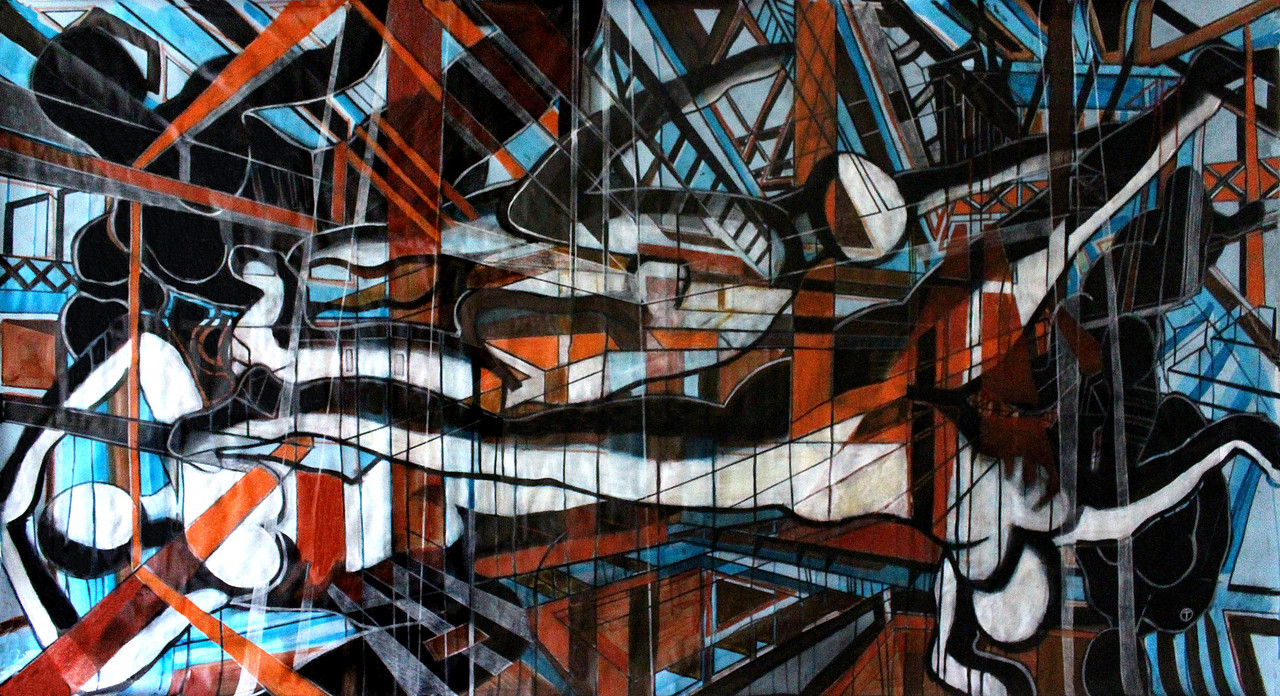 Drawing is a discipline in which ‘looking outside’ and ‘looking and moving within the frame of the paper’ is very important. Sources of inspiration are urban and industrial landscapes and shapes of the human body. Tom’s work consists of countless shades of black but he also uses colour in an exciting way. The artworks change as the daylight changes. Observations and impressions from spending time outdoors inspire his artwork. His skilled drawings may develop into new drawings as well as paintings. In his paintings he combines colour, patches and blots with lines to create several spaces.