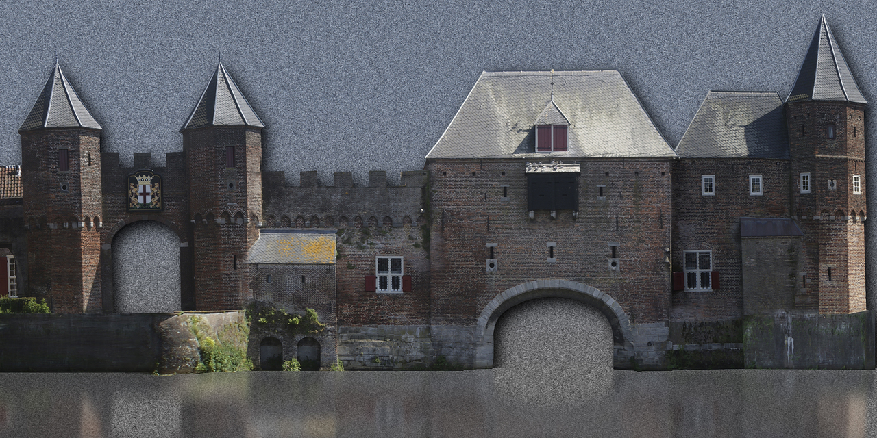 Koppelpoort 1380 - 1425. Stadspoort van Amersfoort. Gekoppelde land en waterpoort