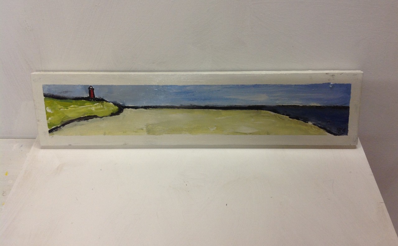 Acryl op hout. titel : Vuurbeeld. 15 x 50 x 2 cm. VERKOCHT.
