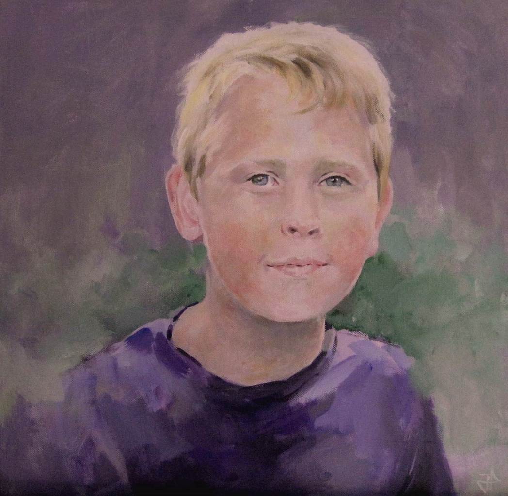 Acryl Paars Groen Kind Portret Portrait Jongen Child Boy