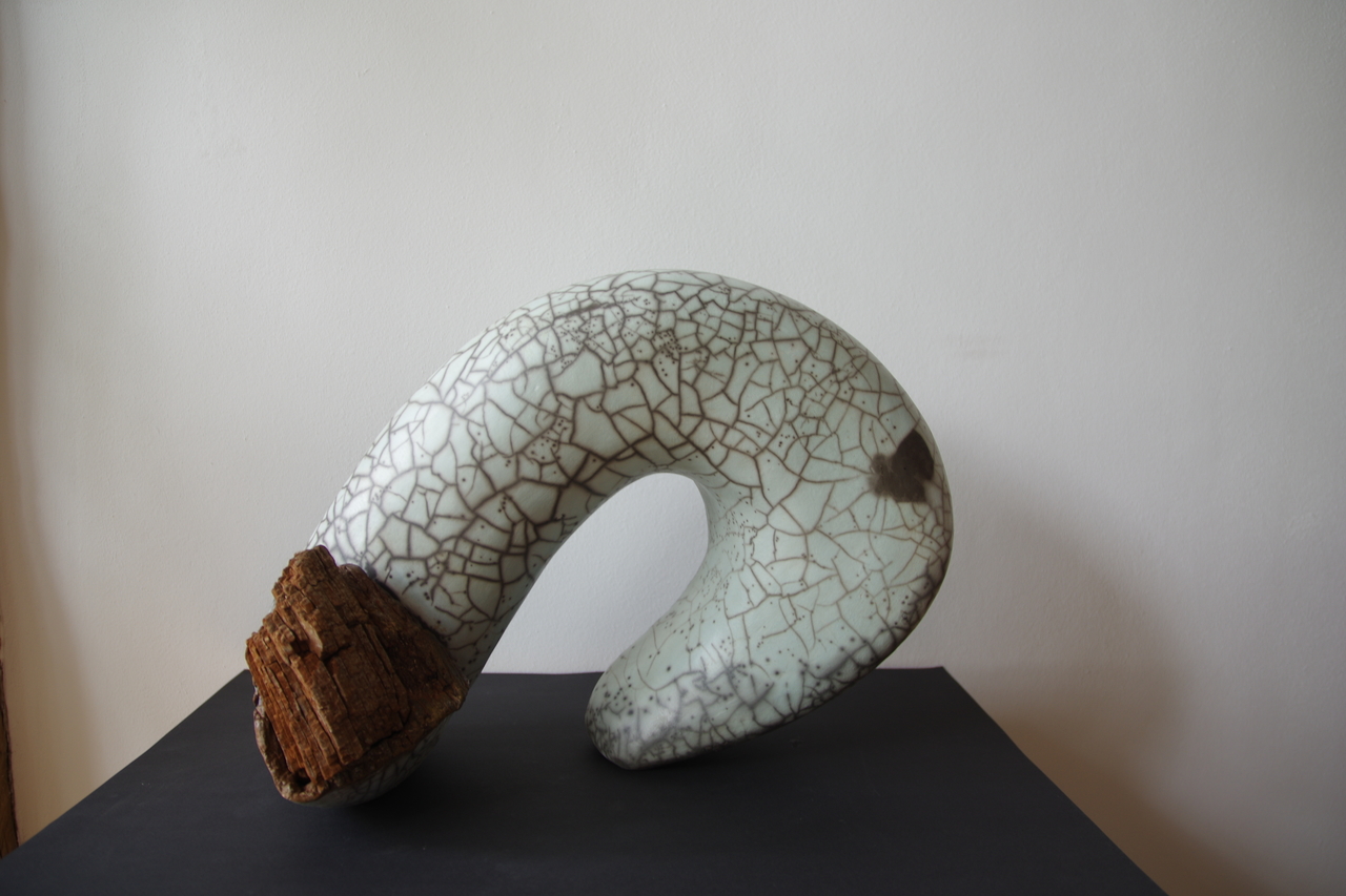 Mijn keramiek is rond, gebogen, zacht en geleidelijk verlopend met verrassende details van laagsgewijs opgebouwde onderdelen die juist speciale aandacht krijgen. Ik laat me uitdagen door het zogenaamde primitieve stoken; pitfire en naked raku.