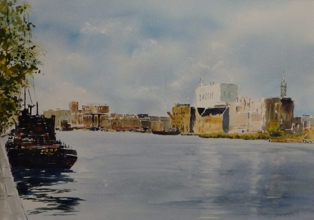 Realistische aquarellen en olieverf schilderijen van Hollands landschap, met altijd expressieve luchten boven de lage horizon zich spiegelend in de waterrijke polder. Ook werken uit de Franse Morvan en van de Oostelijke Algarve in Portugal.
