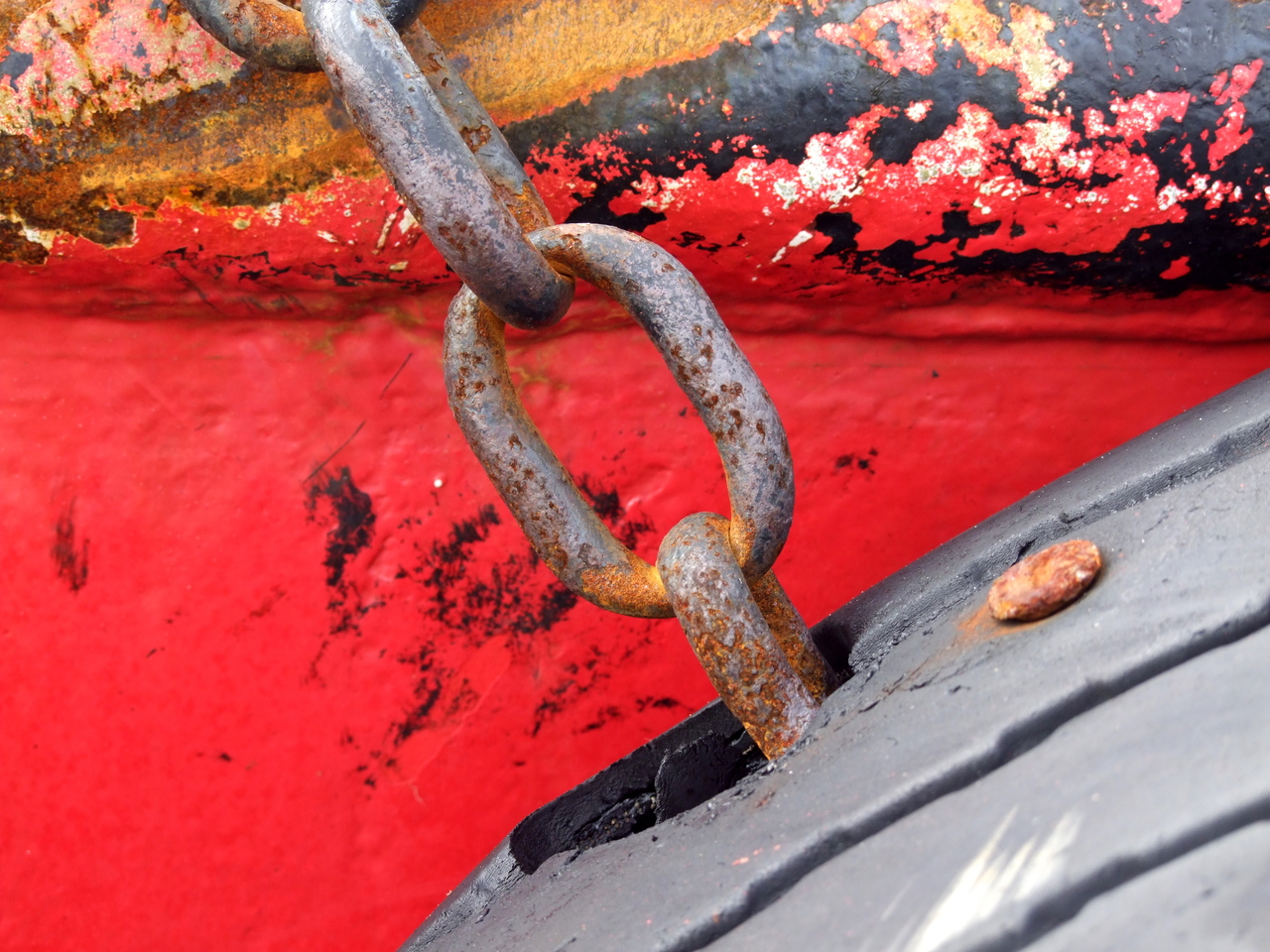 detailfoto van scheepsketting aan boei(band) (te bestellen in verschillende formaten en op verschillende ondergronden)