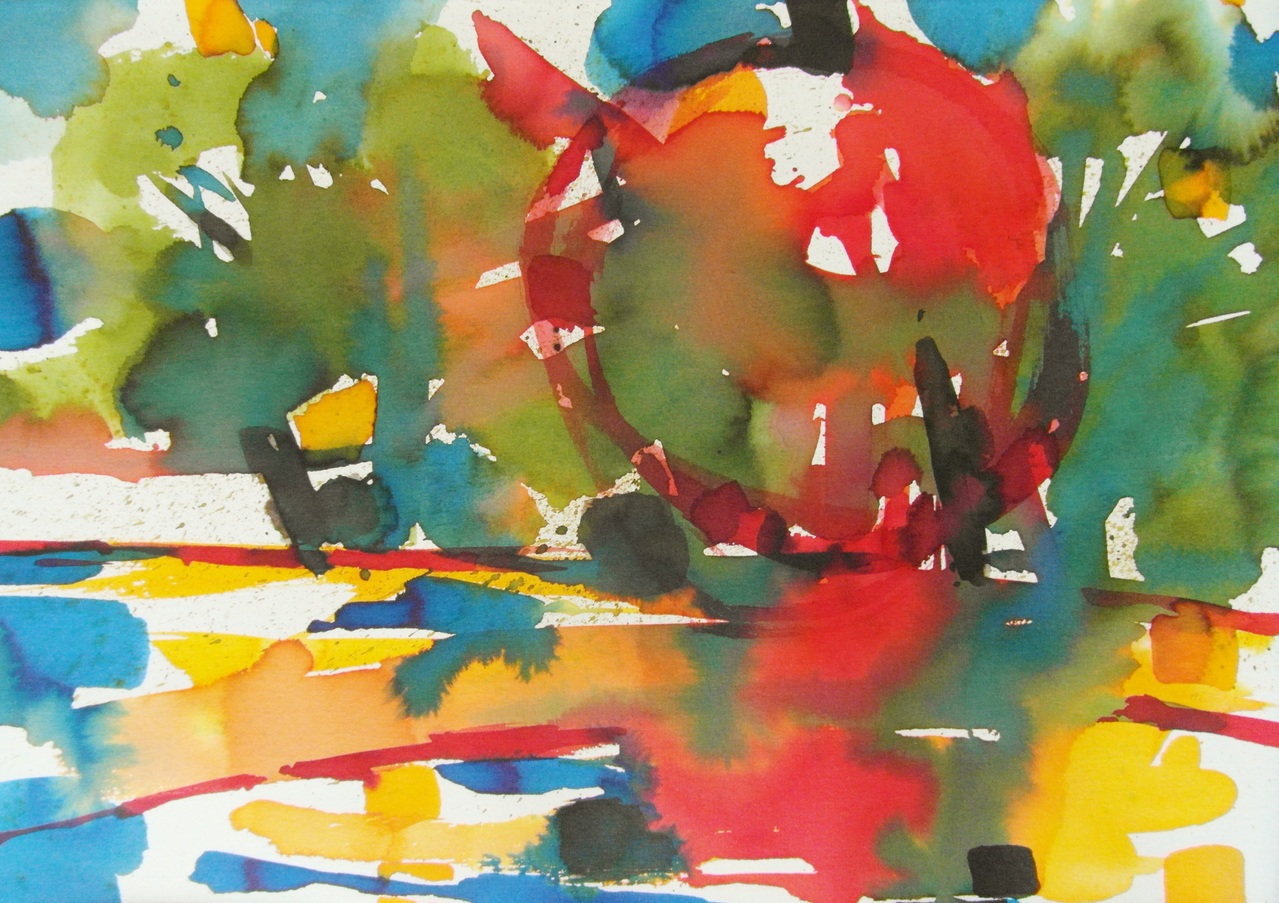 het bijzondere voor mijzelf van deze aquarel is de intensiteit van het kleurgebruik