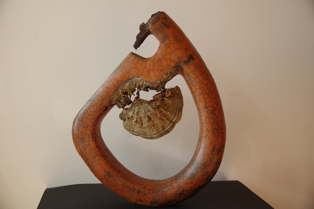 Mijn keramiek is rond, gebogen, zacht en geleidelijk verlopend met verrassende details van laagsgewijs opgebouwde onderdelen die juist speciale aandacht krijgen. Ik laat me uitdagen door het zogenaamde primitieve stoken; pitfire en naked raku.