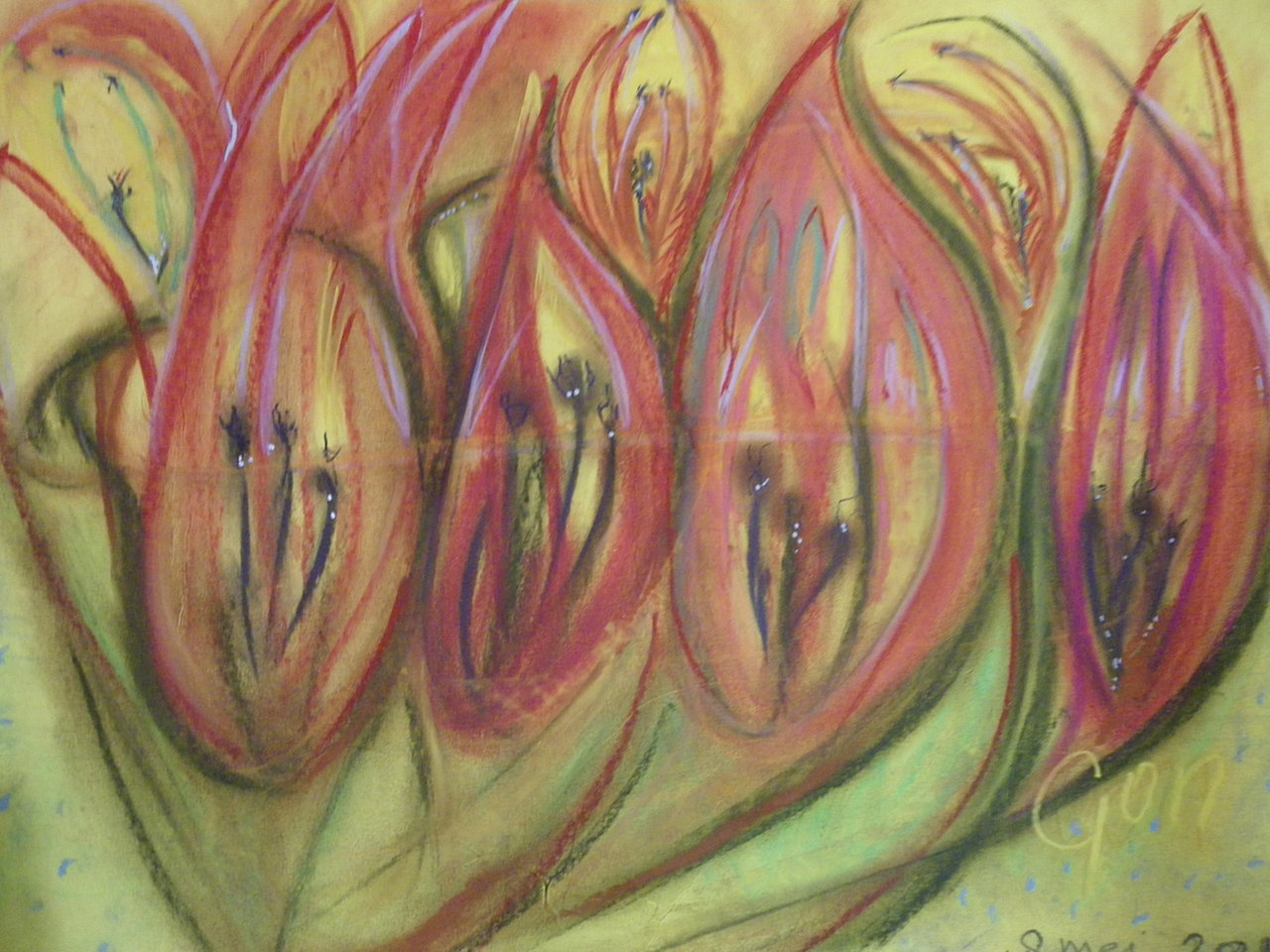 Mijn naam is Gon de Wolf-Hoogland. Enkele jaren geleden ben ik begonnen met pastelkrijt te "schilderen". Ik ben autodidact en vind het een heerlijk materiaal om mee te werken. Ik teken en veeg totdat voor mij een zekere fantasiewereld is ontstaan.