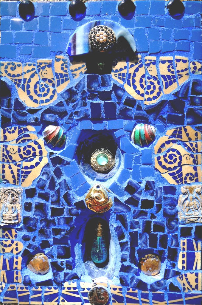 Nisje 01 keramiek, amuletten, sieraden, Thaise munt, glas / Niche 01 ceramics, amulets, jewelry, coin from Thailand , glass / Niche 01 céramique, amulets, bijoux, monnaie thaïlandaise, verre / Nicho 01 cerámicas , amuletos, joyería, moneda tailandesa, vidrio /