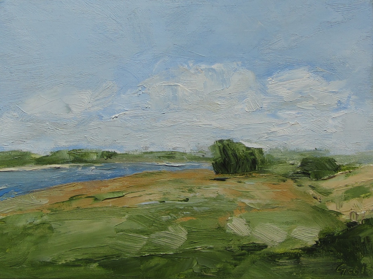 Olieverf Zomer Rivier Lek Uiterwaarden