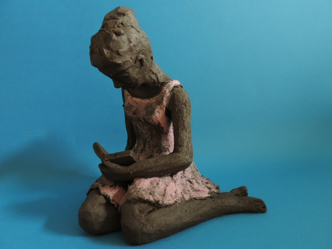 Meisje Bruin Klei Roze Boek Keramiek Lezen