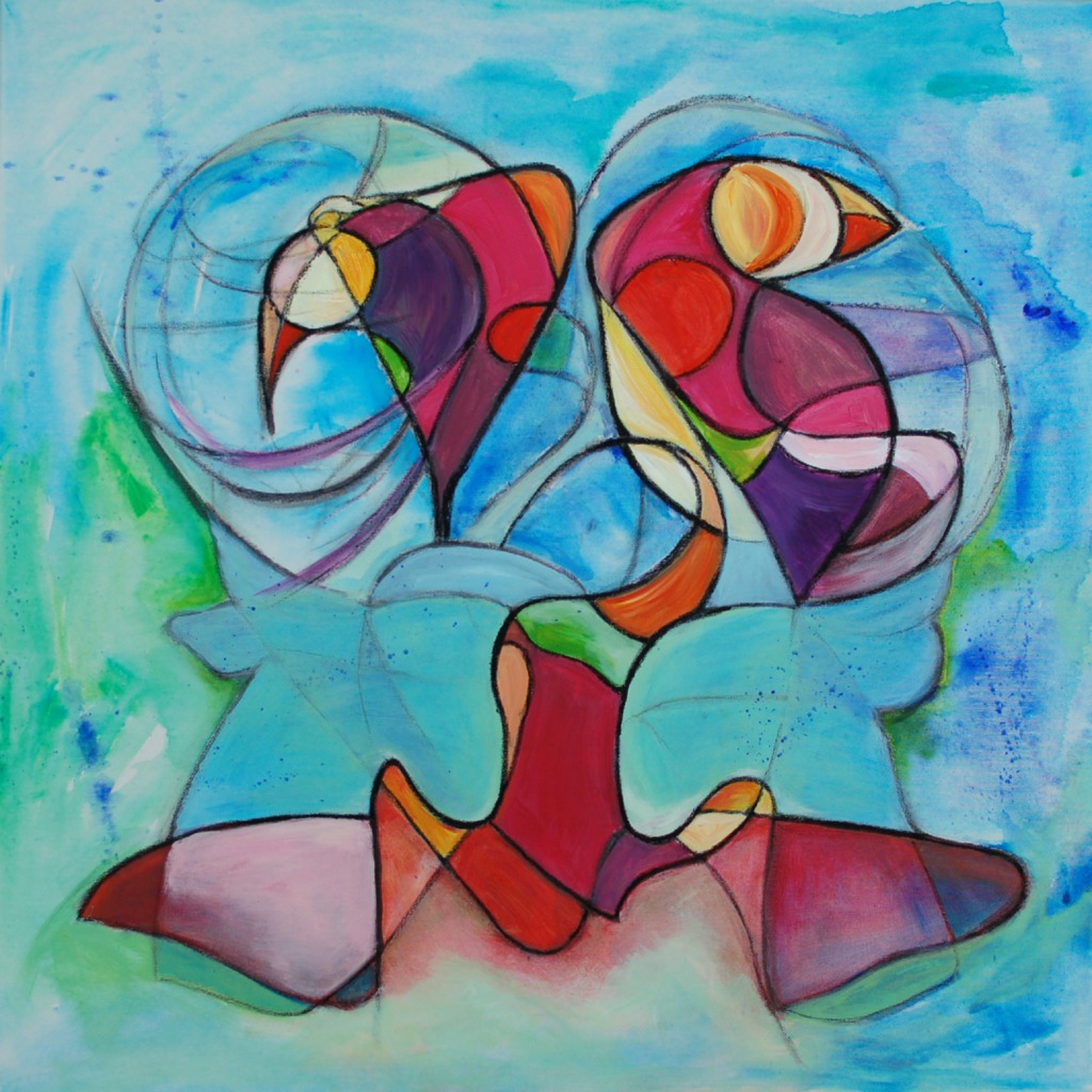 Schilderij Abstract Acryl Kleurig Vierkant Doek Vogels Geiten Mixedmedia Feniks