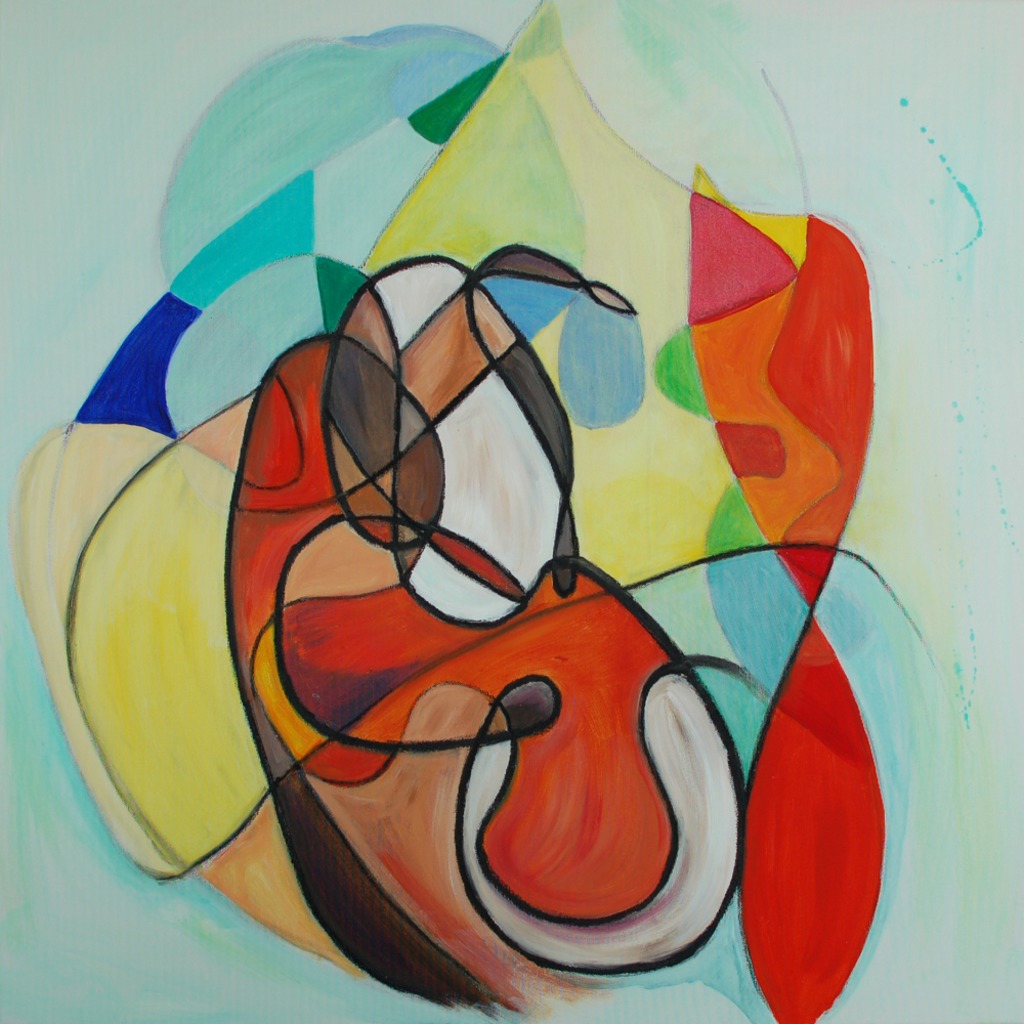 Schilderij Abstract Modern Acryl Kleurrijk Vierkant Doek Mixedmedia Jachthond