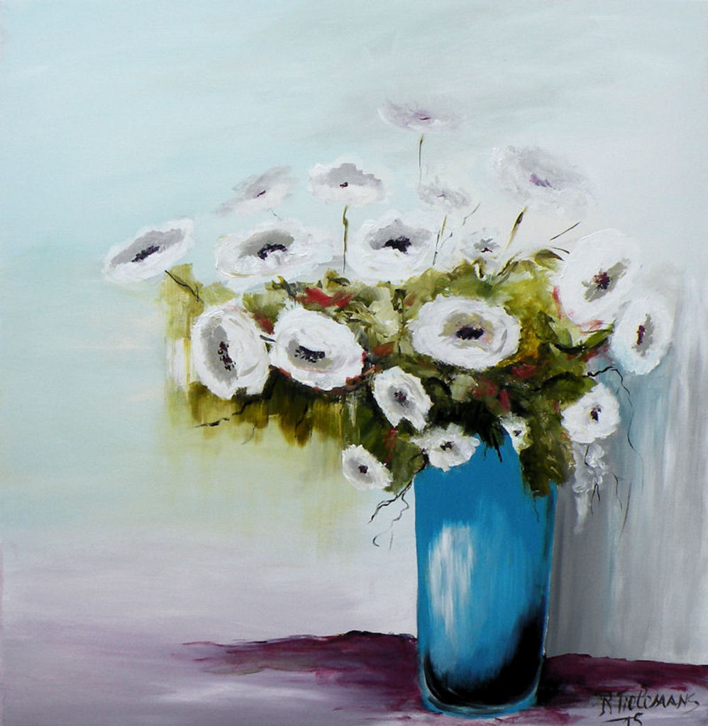 Wit Blauw Groen Bloemen Vaas Blue Acrylverf Green Acrylic Stilleven Roze White Still Life Flowers Paint Pink Vase Ranonkel Ranunculus