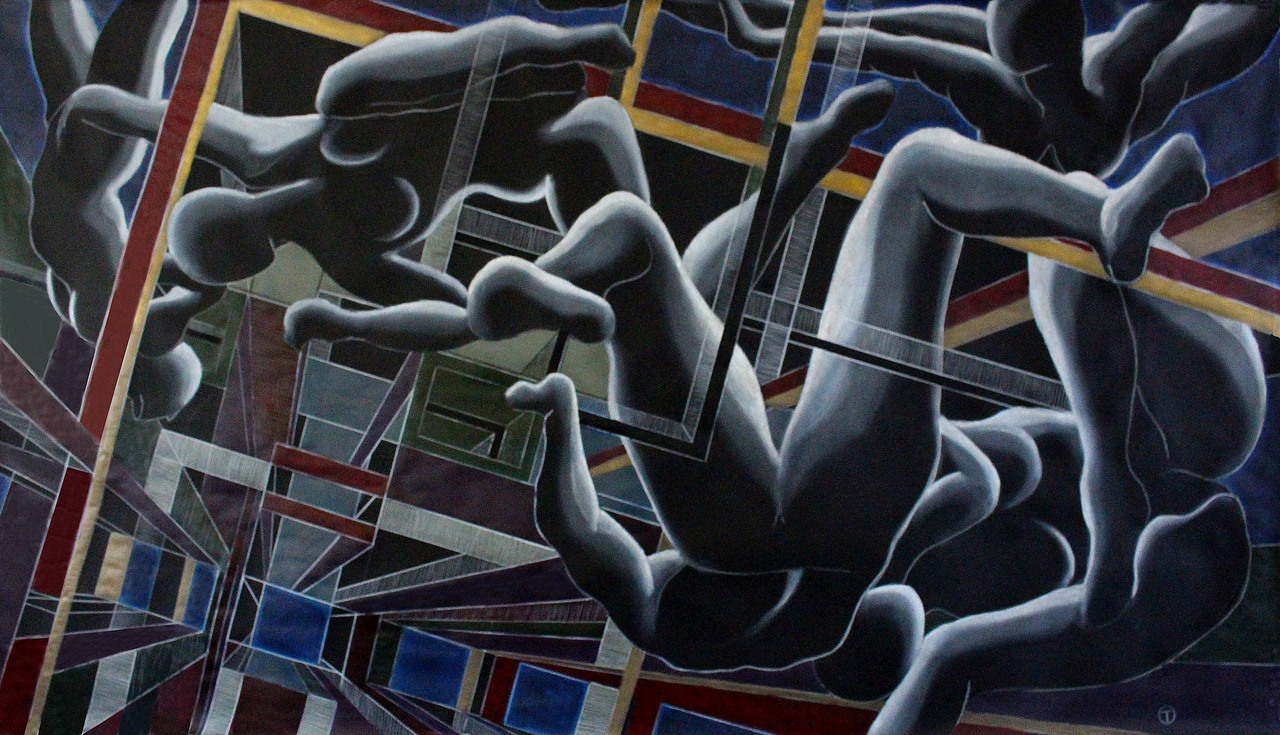Drawing is a discipline in which ‘looking outside’ and ‘looking and moving within the frame of the paper’ is very important. Sources of inspiration are urban and industrial landscapes and shapes of the human body. Tom’s work consists of countless shades of black but he also uses colour in an exciting way. The artworks change as the daylight changes. Observations and impressions from spending time outdoors inspire his artwork. His skilled drawings may develop into new drawings as well as paintings. In his paintings he combines colour, patches and blots with lines to create several spaces.