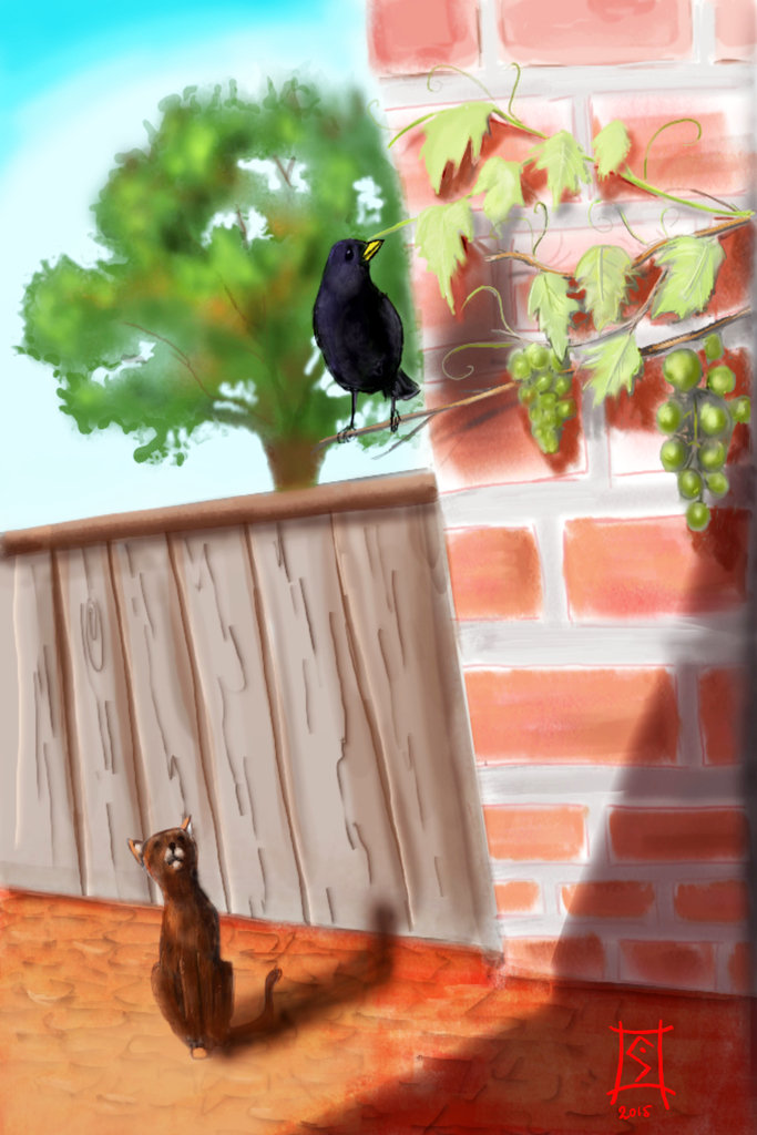Merel Blackbird Druiven Grapes Kat Cat Herfst Autum Fall