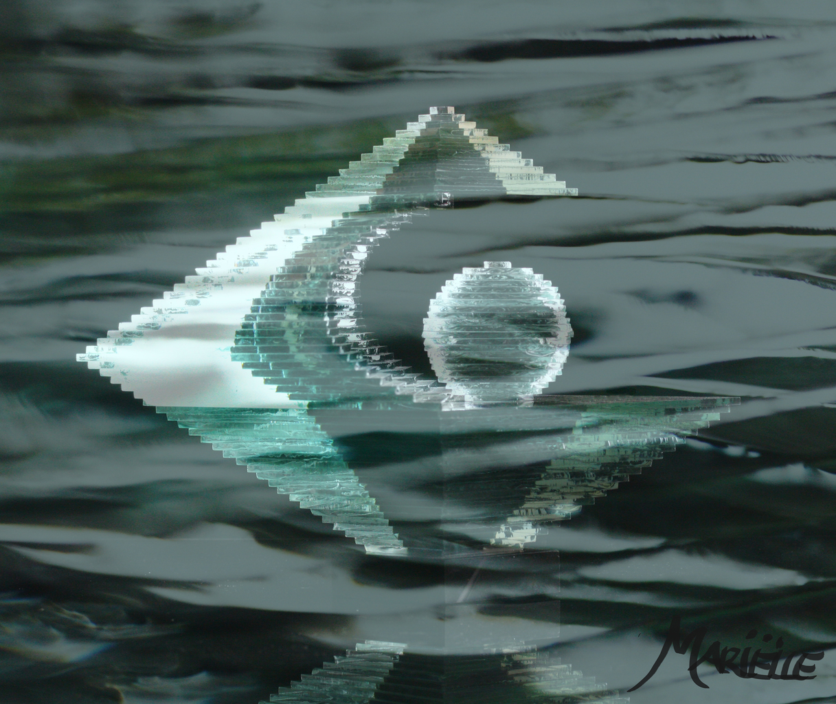 Mariëlle Braanker maakt glasobjecten opgebouwd uit vlakglas. Ze maakt figuratieve en abstracte objecten, die o.a. te zien zijn in haar Galerie Glas +.