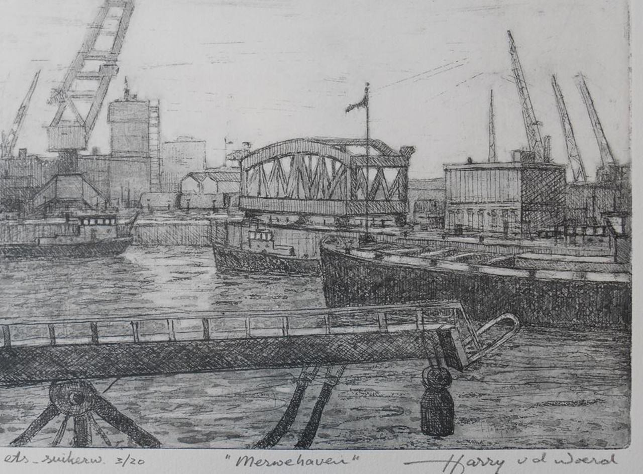 Merwehaven met de Hef die voor een opknapbeurt in deze haven ligt.