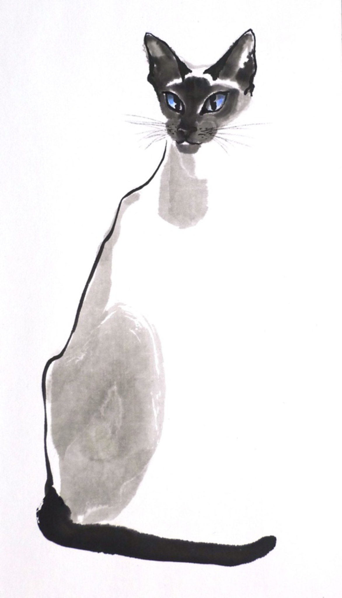 Wit Zwart Dier Kat Painting Inkt Cat Siamees Zen Schilderen Animal Brush Ink Siamese Sumi-e