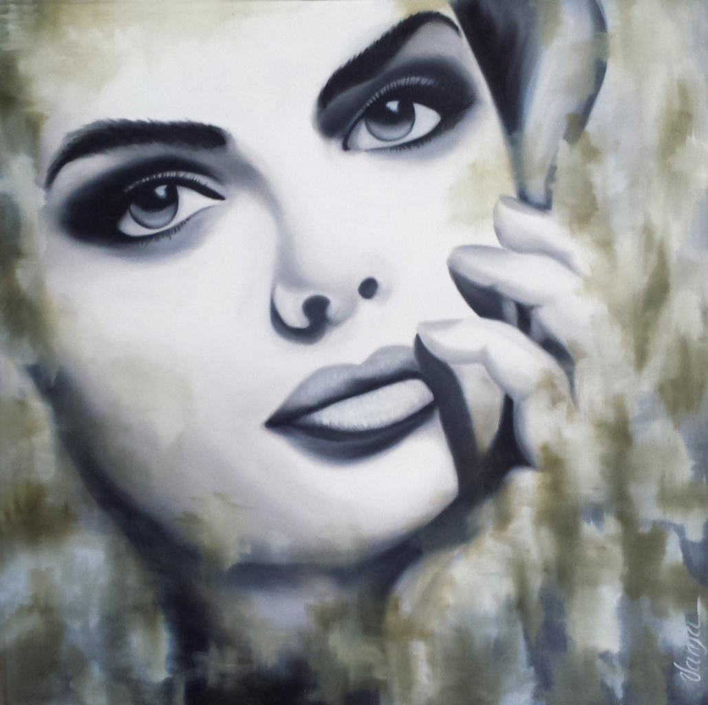 Schilderijen in olieverf. Vrouwelijke schilderijen met een voorkeur van close-up fragmenten, gebracht in een realistische stijl of in een popart stijl.