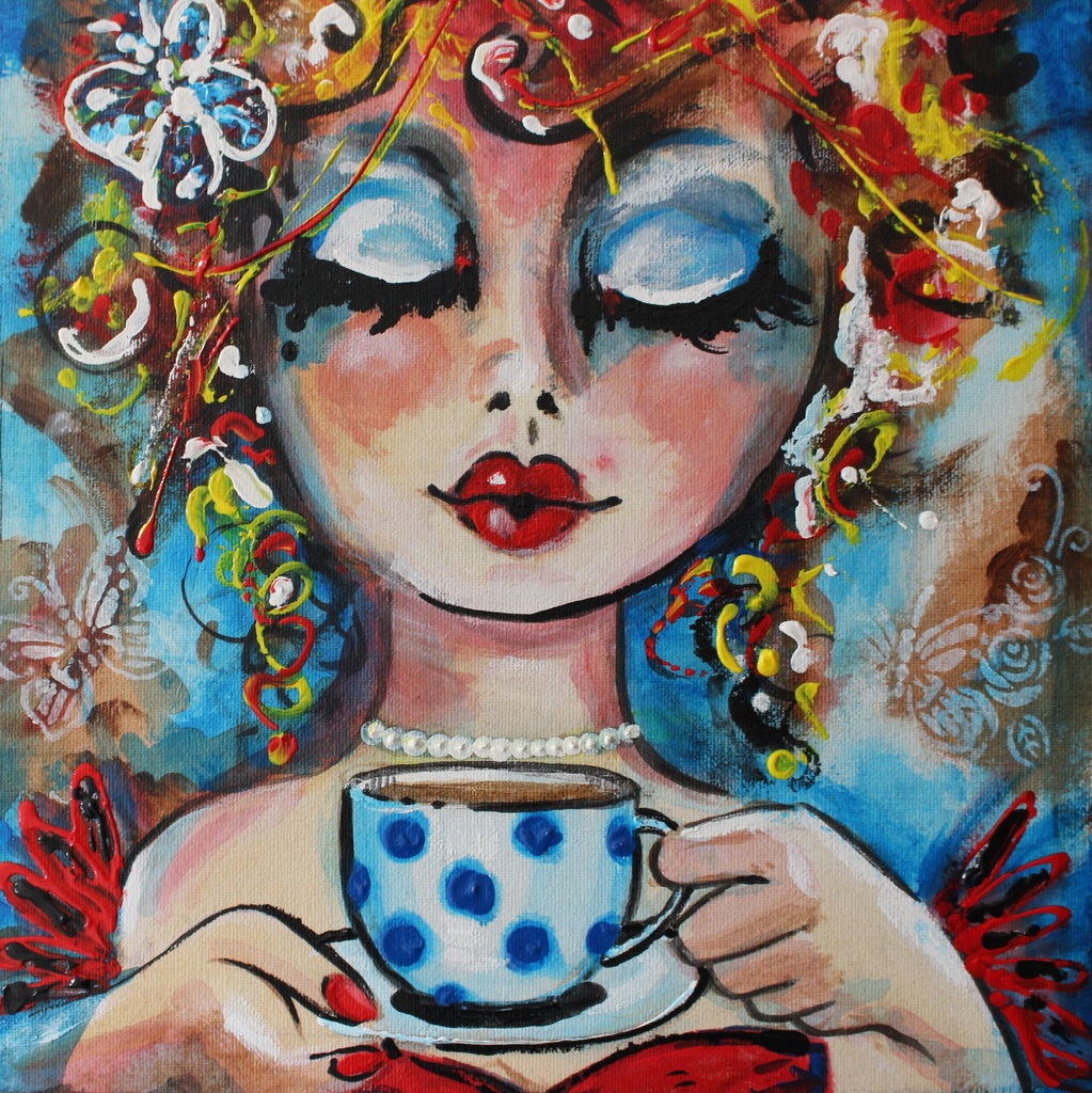 Portret van een dame met een kopje thee.